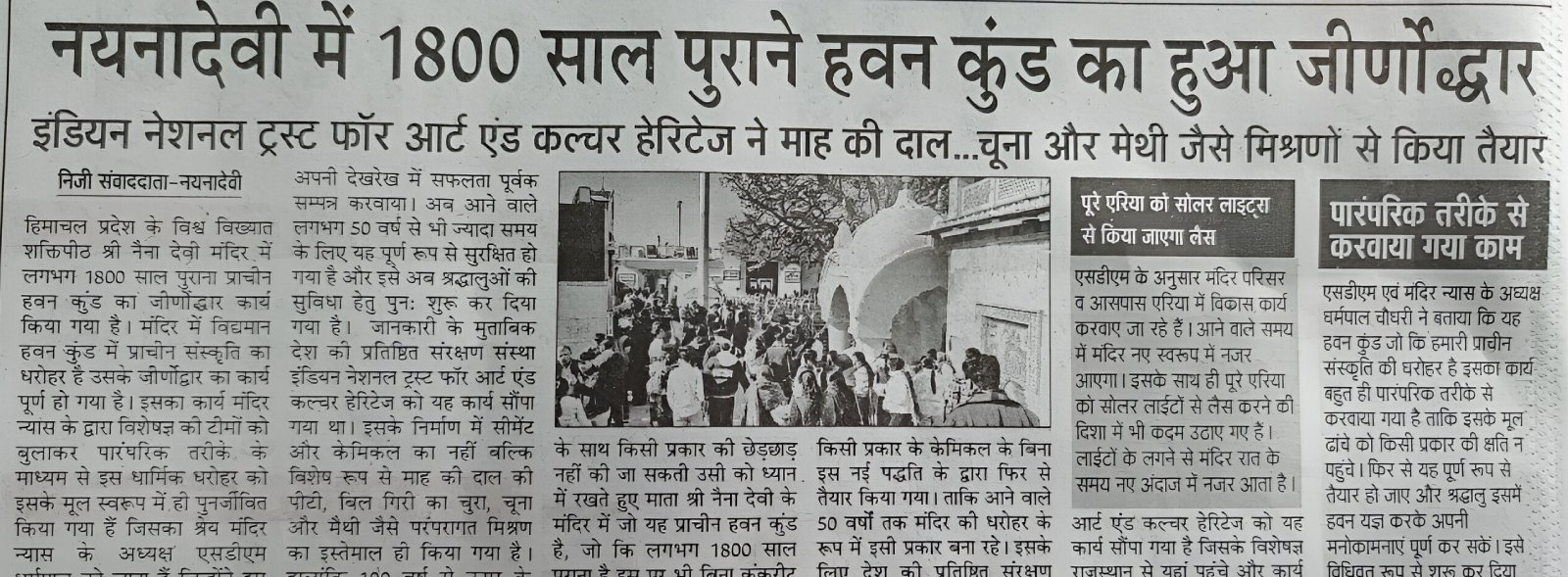 30 December 2025 नयनादेवी में 1800 साल पुराने हवन कुंड का हुआ जीर्णोद्धार 19 December 2025 श्रद्धालुओं ने मां नयना के चरणों में लगाई हाजिरी 19 December 2025 कर्मचारी व अधिकारी किए सम्मानित 15 December 2025 मंदिर की स्थापना दिवस पर खेलकूद प्रतियोगिता शुरू 15 December 2025 40 साल का हुआ श्रीनयनादेवी मंदिर ट्रस्ट 10 December 2025 नयनादेवी में होनहार दिखाएंगे हुनर 10 December 2025 शक्तिपीठों में बेहतर सुविधाएं देने पर व्यय होंगे 100 करोड़ः संजय गुप्ता 06 December 2025 मास्टर सलीम व रोशन प्रिंस देंगे पहली सांस्कृतिक संध्या में प्रस्तुति 03 December 2025 श्री नयना देवी मंदिर न्यास के स्थापना दिवस के 40 वर्ष पूरे होने पर 16-17 को होगा समारोह 29 November 2025 मां नयना का शयन कक्ष, पूजा कक्ष और काउंटिंग रूम होंगे मॉडर्न 19 December 2025 कर्मचारी व अधिकारी किए सम्मानित 19 December 2025 श्रद्धालुओं ने मां नयना के चरणों में लगाई हाजिरी